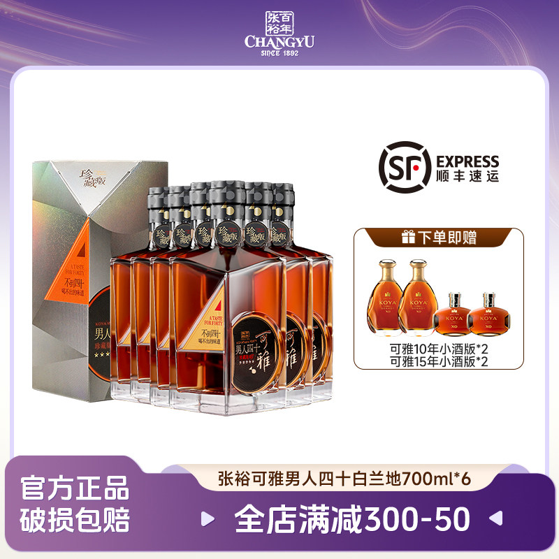 可雅男人四十张裕珍藏版五星金奖白兰地700ml 40度礼盒装洋酒正品