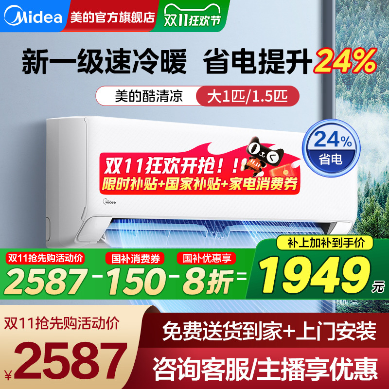 美的空调新一级能效变频酷清凉1.5匹大1匹家用挂机官方旗舰店正品