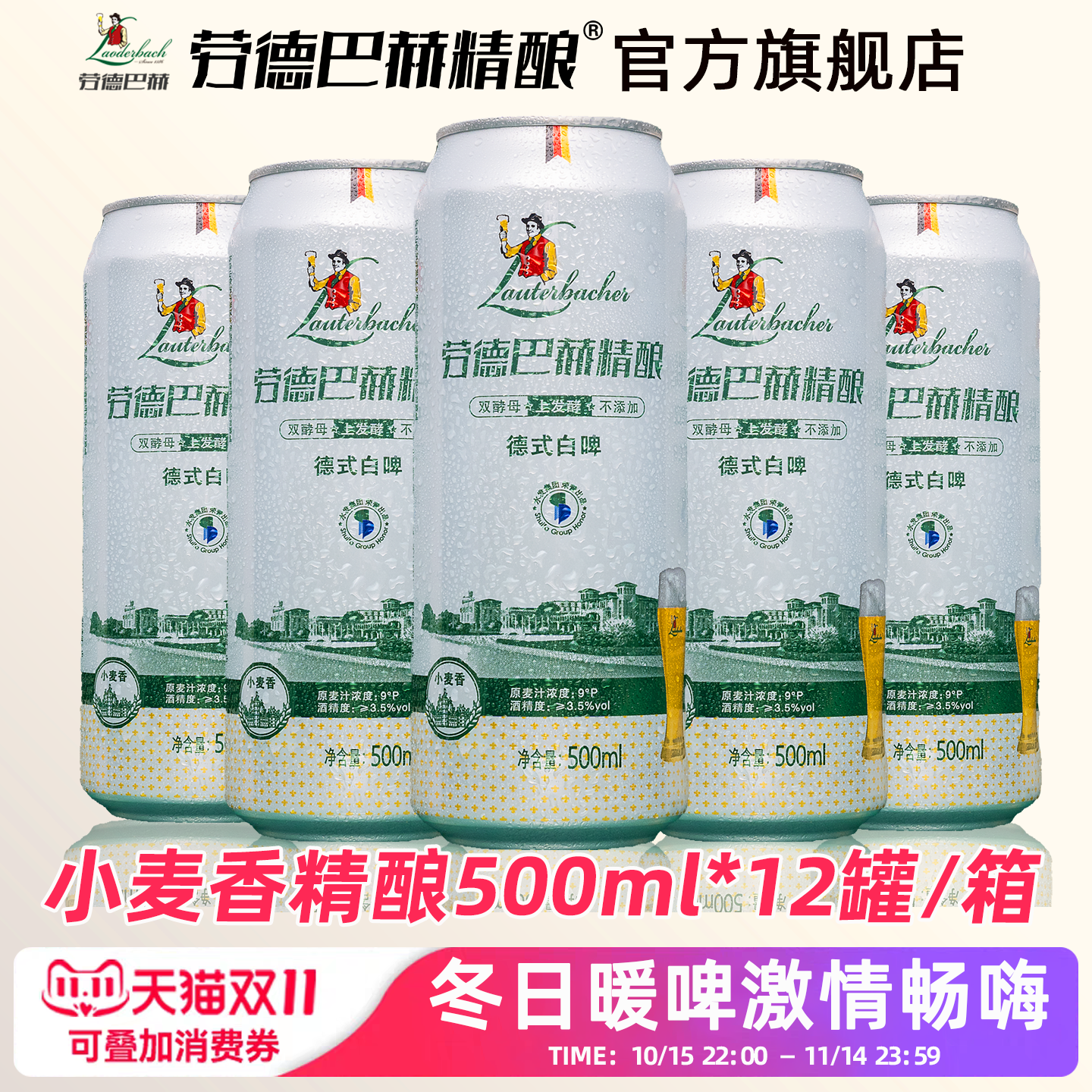 劳德巴赫精酿啤酒整箱500ml*12罐小麦香麦汁浓度9°P德式全麦白啤