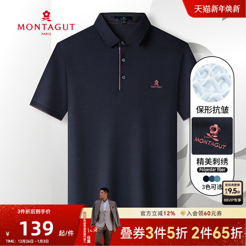 [轻薄透气珠地]梦特娇夏季新款商务休闲短袖翻领polo衫男T恤上衣M