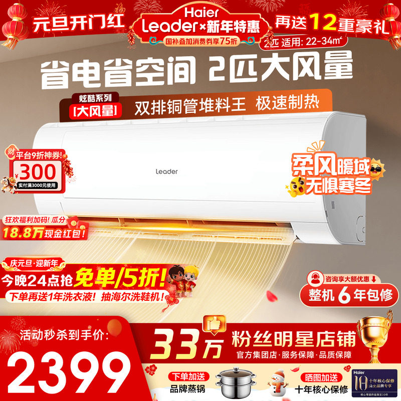 • 泡美丽»»[国补15%】海尔空调3匹2匹统帅大挂机家用客厅一级能效变频旗舰店