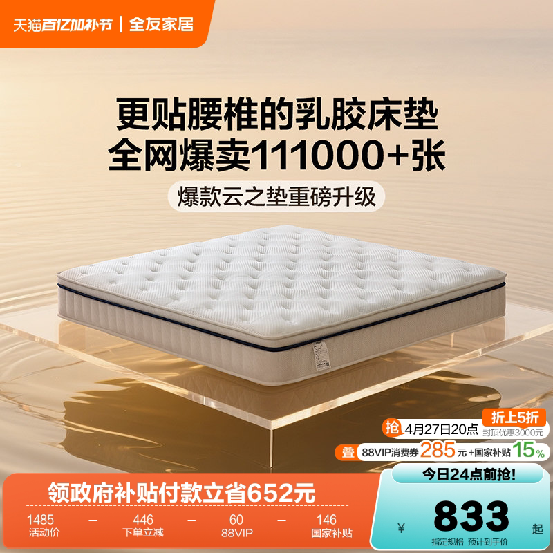 全友家居独袋弹簧酒店席梦思床垫进口乳胶硬垫家用卧室天然椰棕垫