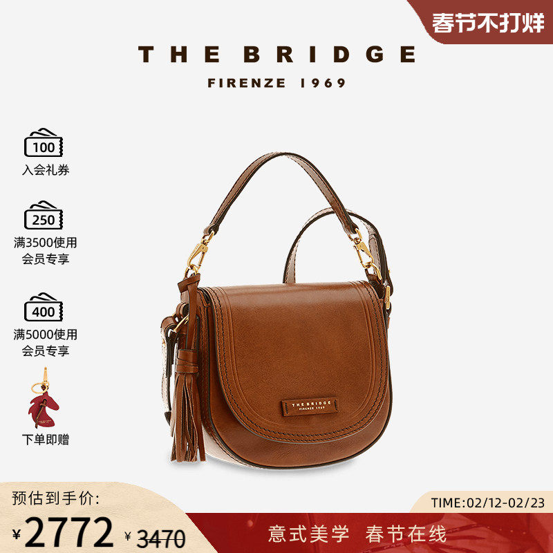 • 泡美丽»»The Bridge/桥牌 手工牛皮植鞣工艺单肩斜挎包流苏复古轻奢女包