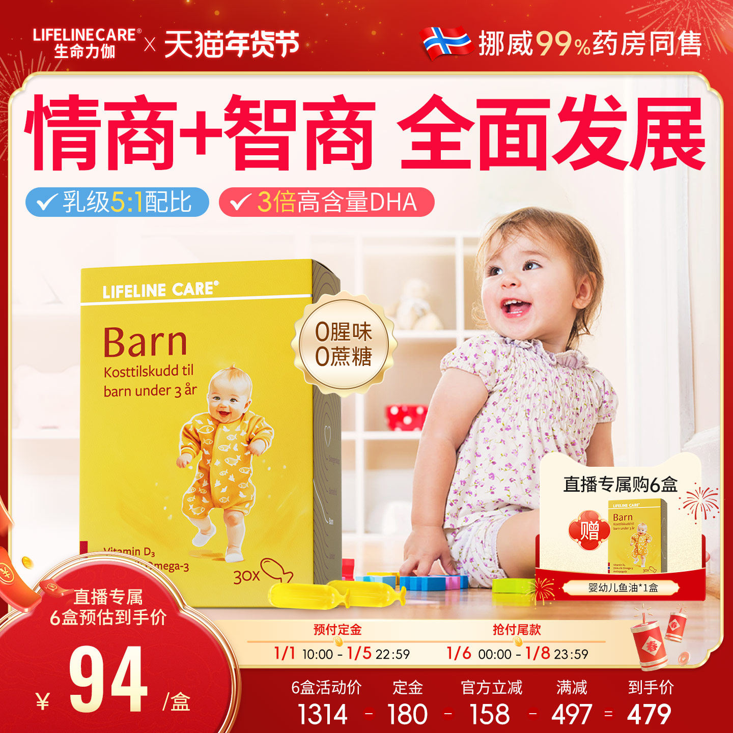 LifelineCare挪威小鱼婴幼儿深海鱼油欧米茄3dha宝宝儿童营养补脑