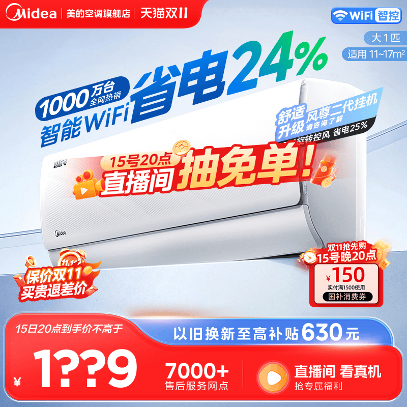 美的官方正品空调家用一级卧室大1匹1.5匹变频冷暖挂机酷省电
