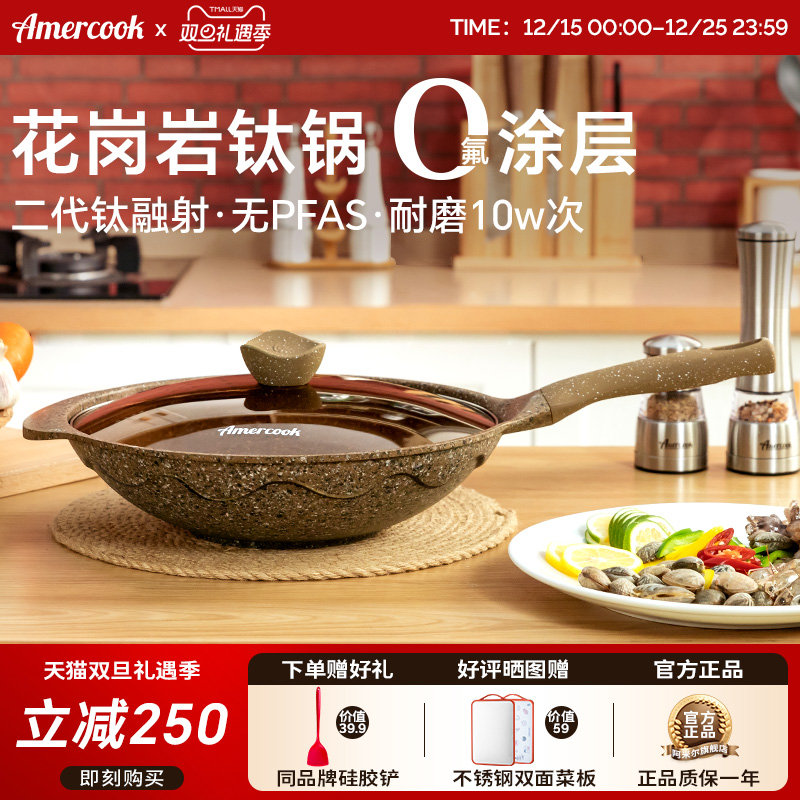 Amercook阿尔菲塔麦饭石花岗岩钛炒锅不粘锅家用炒菜锅燃气电磁炉