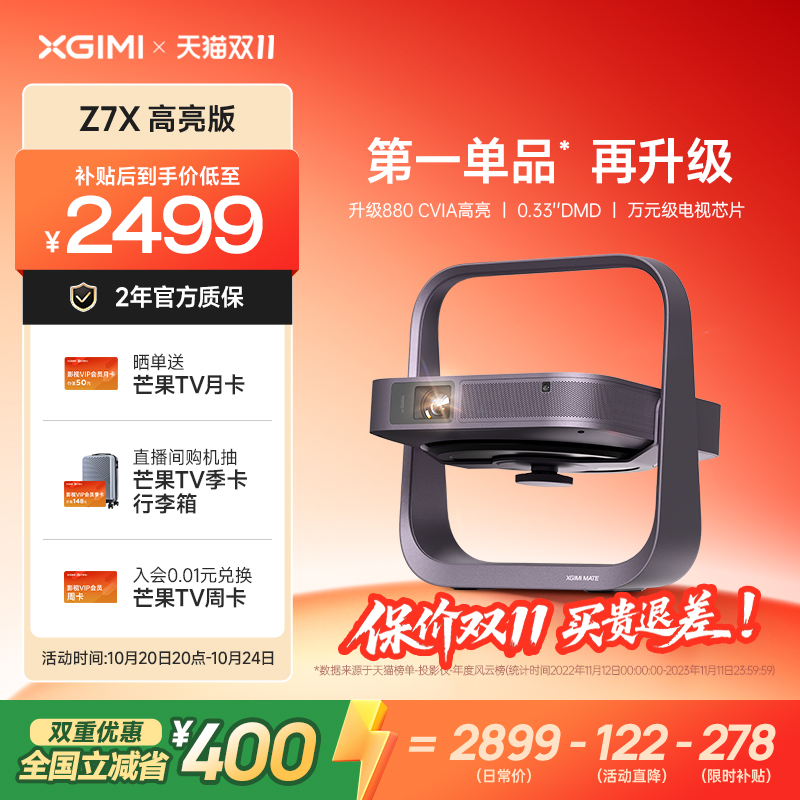 【双重优惠 全国立减400元】极米Z7X高亮版投影仪家用1080P全高清轻薄客厅