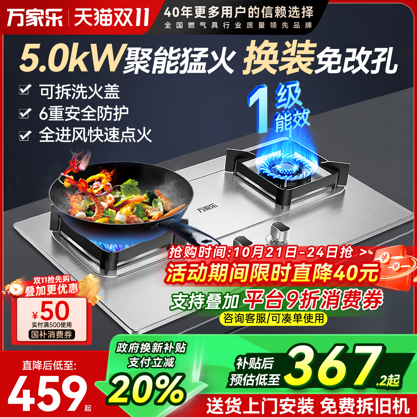 万家乐AY5G燃气灶双灶不锈钢灶台天然液化气灶嵌入式煤气家用AY4G