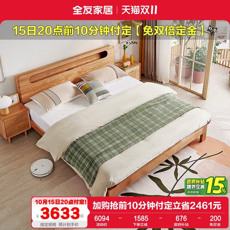 全友家居1.5m单人实木床现代简约高箱储物大床1米8主卧双人橡木床