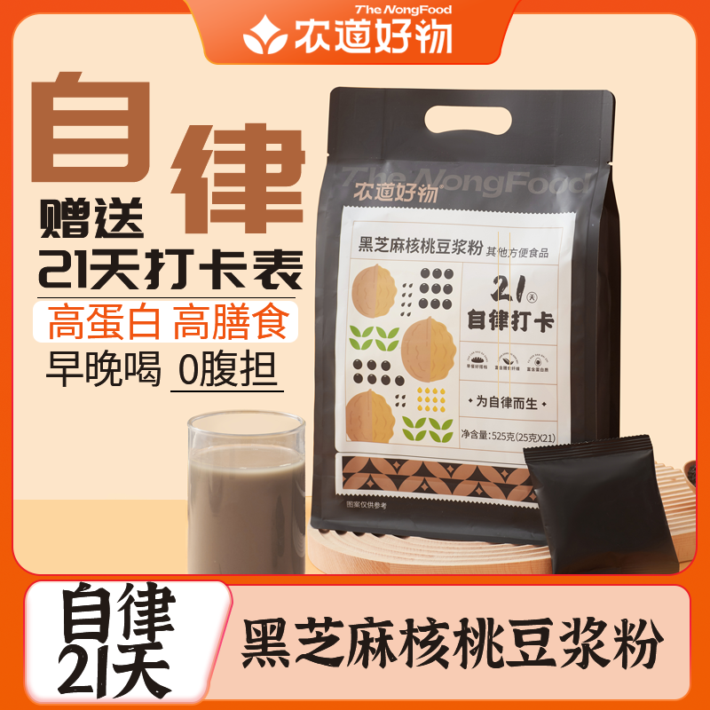 农道好物无糖黑芝麻糊核桃豆浆黑豆粉豆浆粉五黑粉代餐粉黑芝麻粉