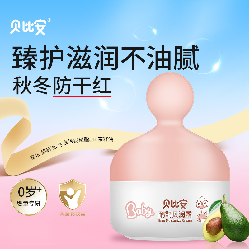 贝比安婴幼儿童面霜宝宝贝润霜男女宝宝乳霜秋冬鸸鹋油保湿霜30g