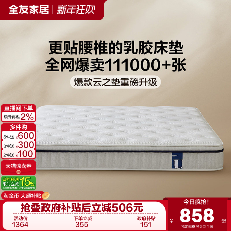 全友家居软硬适中双面乳胶床垫家用卧室双人椰棕床垫酒店席梦思