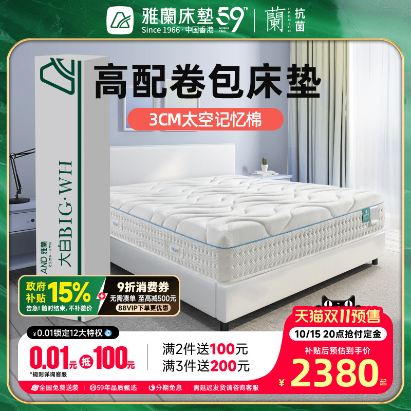 雅兰记忆棉压缩床垫独袋弹簧酒店席梦思2米x2米卷包家用盒子大白