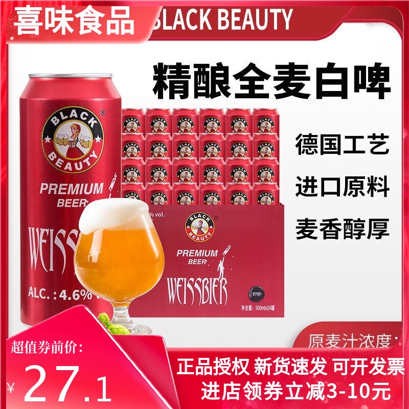 黑美人原浆白啤酒500ml12/24听罐优选全麦纯啤酒精酿整箱多省包邮