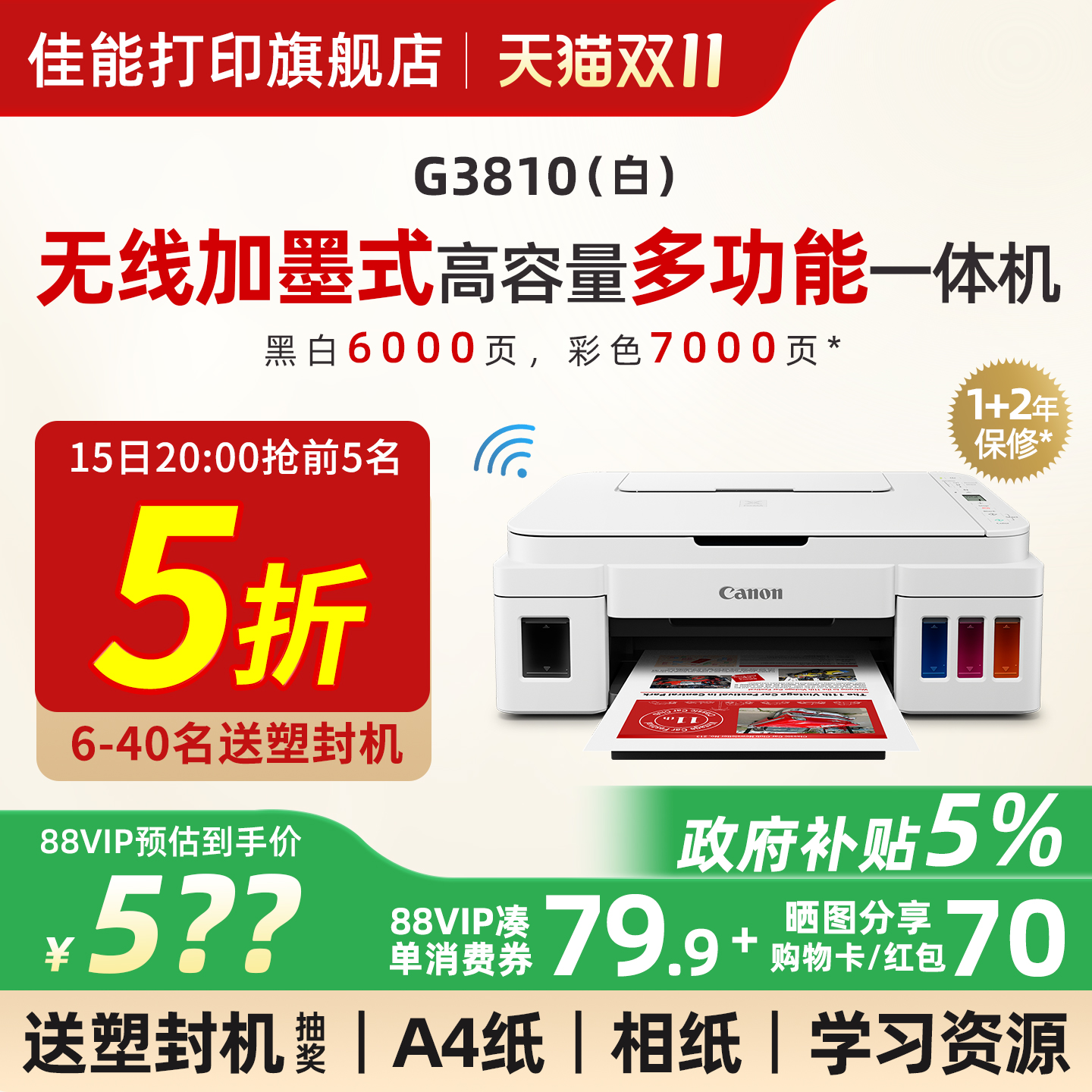 佳能G3810w无线家用小型打印机可连手机连供墨仓式彩色喷墨复印扫描一体机wif