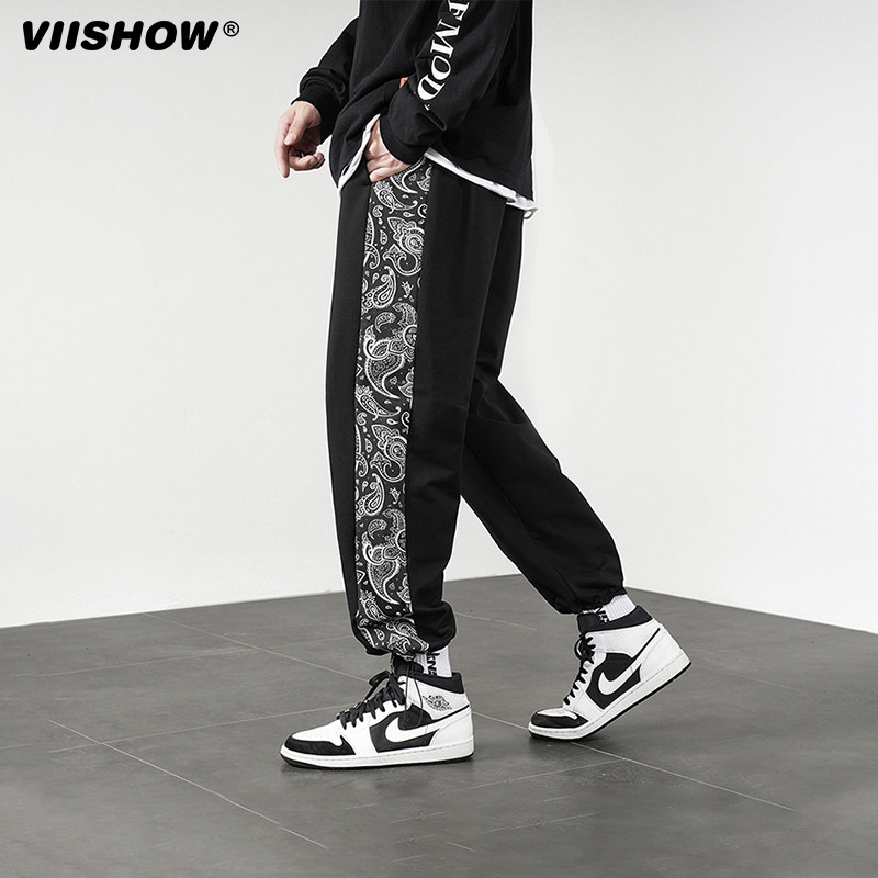 VIISHOW休闲裤男士春秋ins潮流腰果花直筒宽松休闲情侣束脚卫裤子