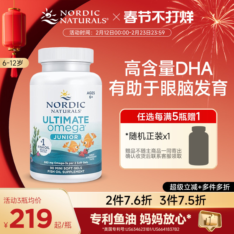 Nordic挪威小鱼深海鱼油儿童dha少儿Omega青少年学生记忆力软胶囊