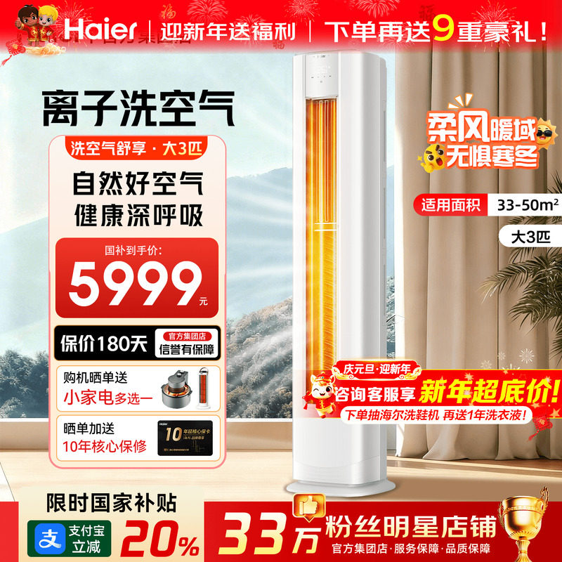 【麦浪】海尔洗空气空调家用2匹3匹一级能效变频客厅立式柜机72E3