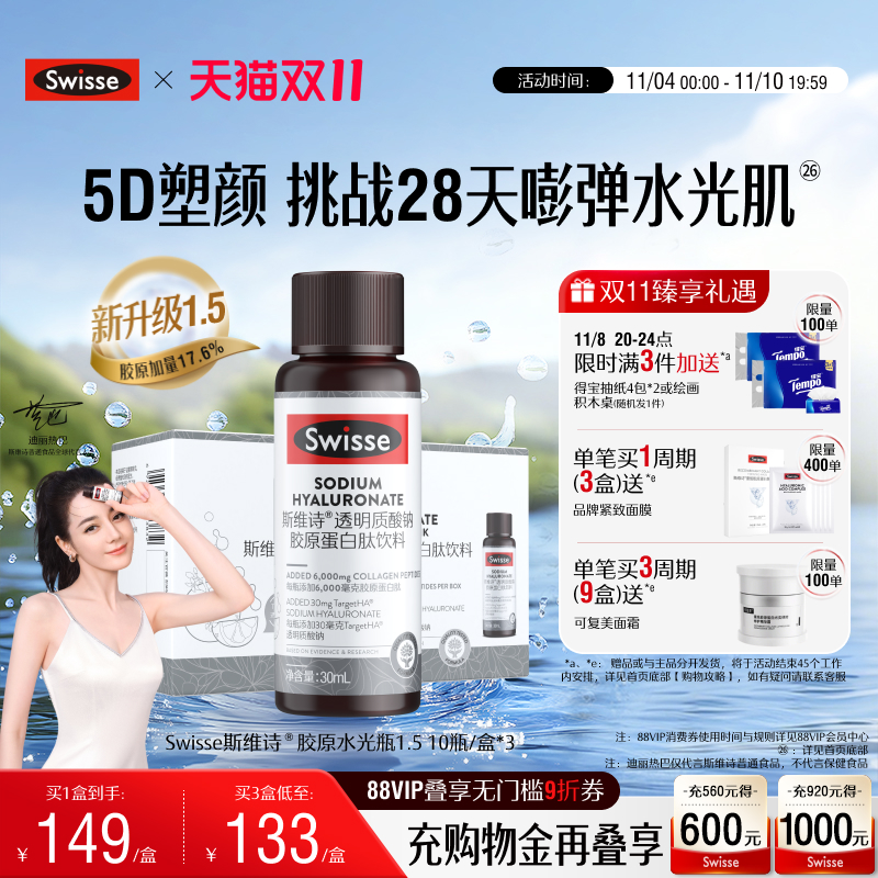 • 泡美丽»»【双11现货】Swisse斯维诗胶原水光瓶PRO鱼胶原蛋白肽口服玻尿酸