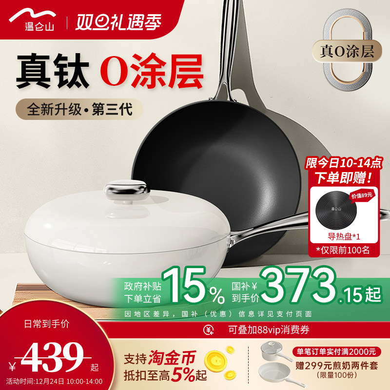 【新品】Velosan温仑山无涂层不粘锅钛炒锅家用炒菜锅陶瓷鹅卵石