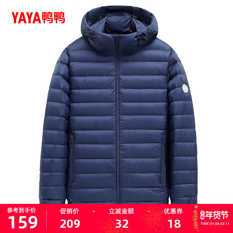 鸭鸭轻薄羽绒服男款2025年秋冬反季连帽青年潮流休闲短款鸭绒外套