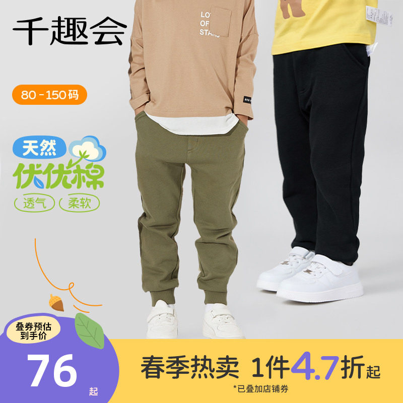千趣会童装儿童26年春秋长裤休闲百搭男女童弹力棉宝宝舒适运动裤