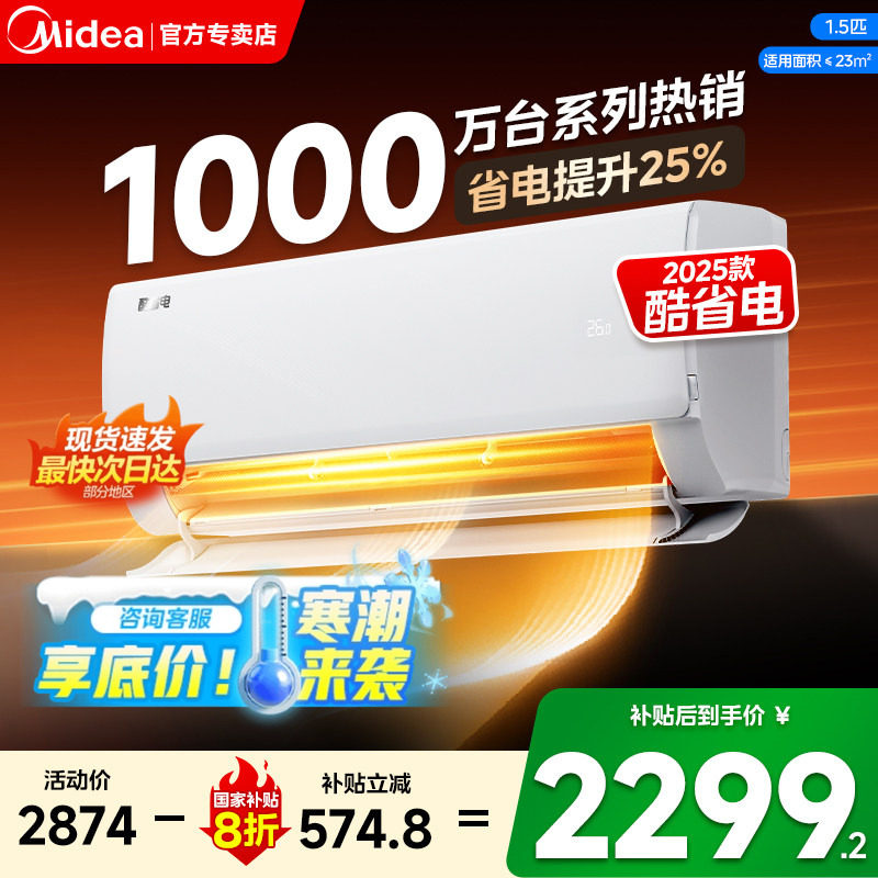 美的空调官方正品酷省电2025版一级家用大1.5匹2匹变频冷暖挂机