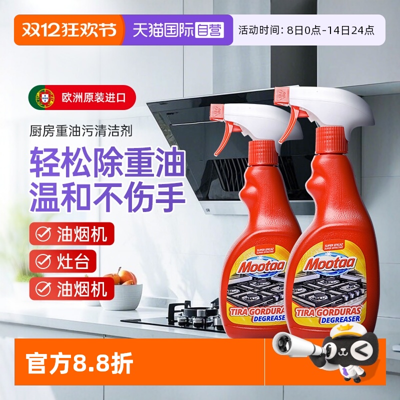 【自营】【2瓶装】Mootaa厨房去重油污强力清洗剂油烟机清洁除垢