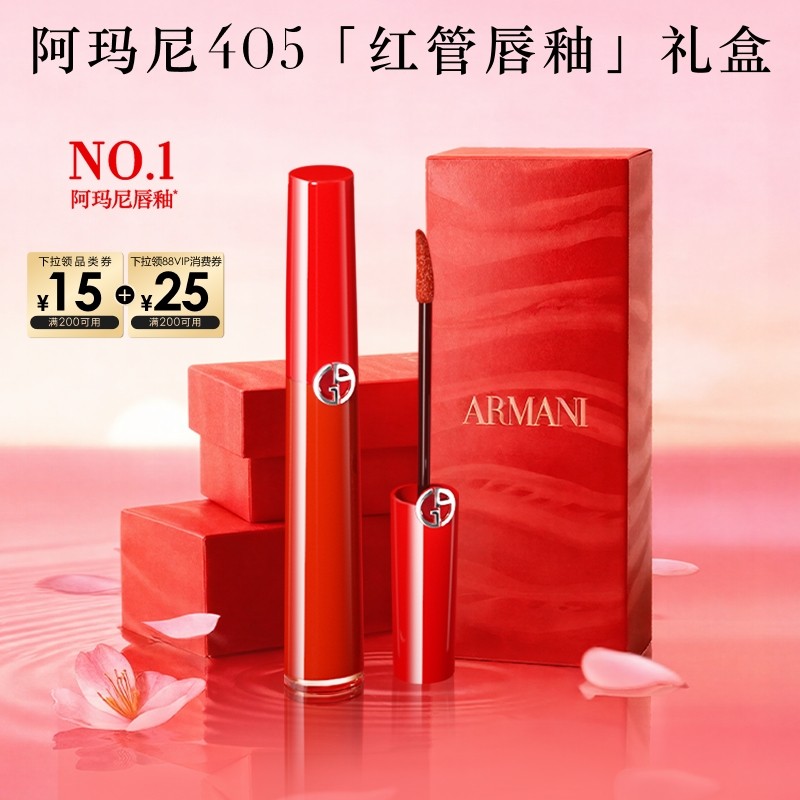 • 泡美丽»»【新年礼物】阿玛尼红管丝绒唇釉显白保湿哑光口红礼物405番茄红