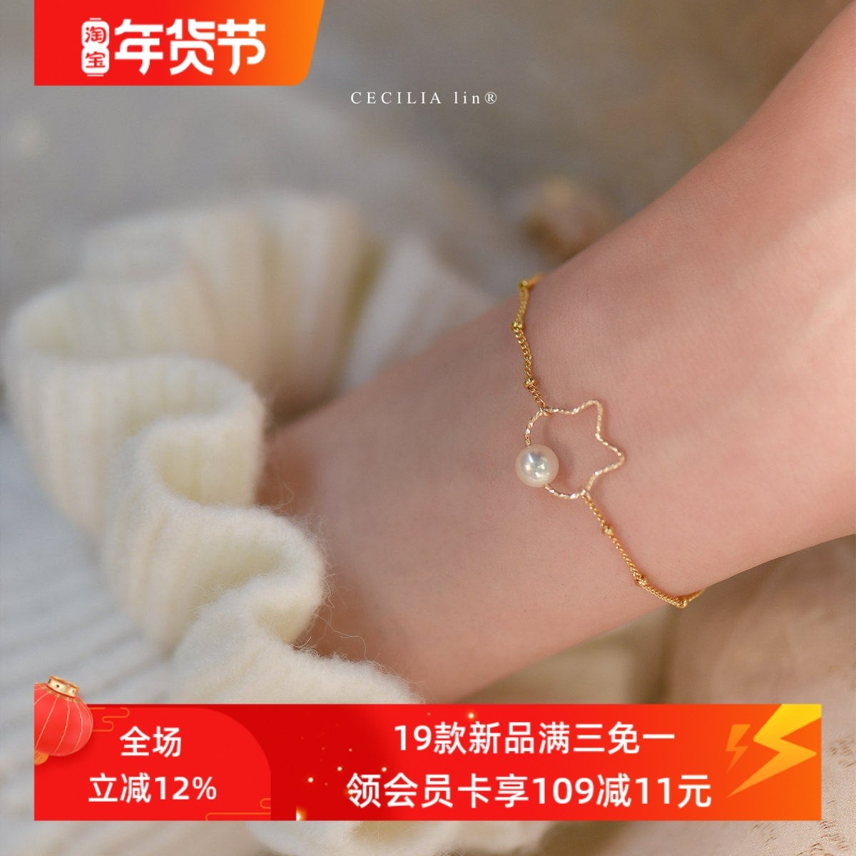 赛赛莉安原创设计猫咪珍珠14K包金手链简约气质小众高级感礼物女