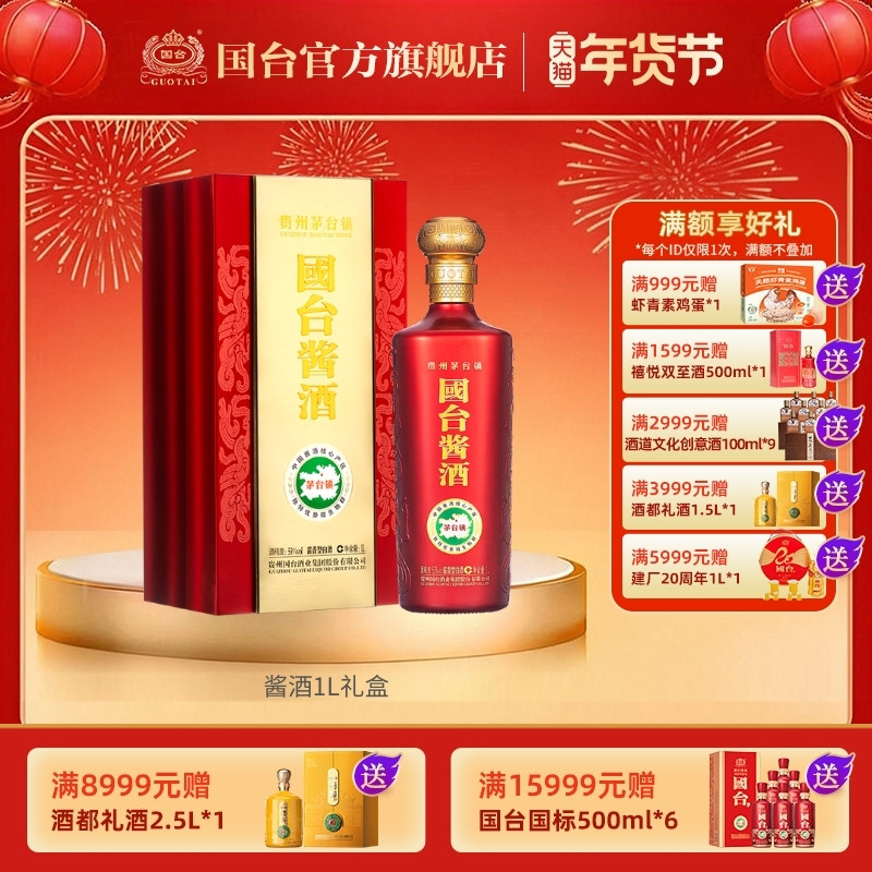 国台酱酒酱香型53度1L礼盒正宗酱香型白酒
