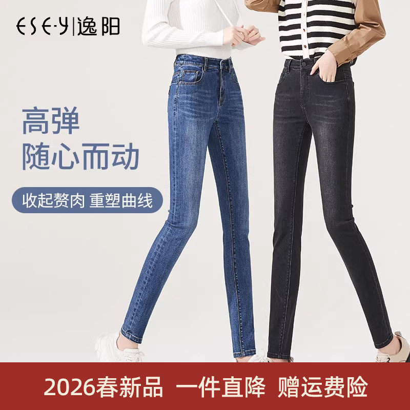 逸阳女裤春季新款韩版牛仔裤长修身小脚裤显瘦黑色小码百搭铅笔裤