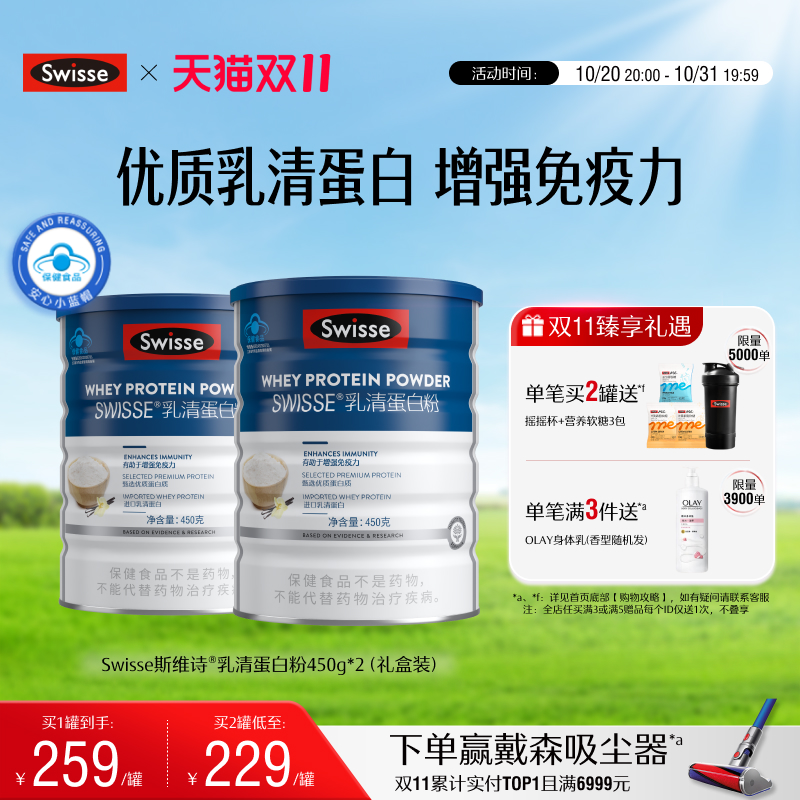 • 泡美丽»»【20点开抢】Swisse斯维诗乳清蛋白质粉中老年增强免疫力男女营养