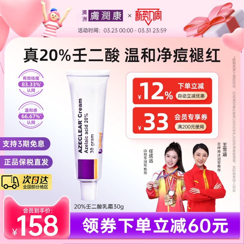 澳洲肤润康20%壬二酸乳膏祛痘凝胶控油修护粉刺闭口面霜杜鹃花酸