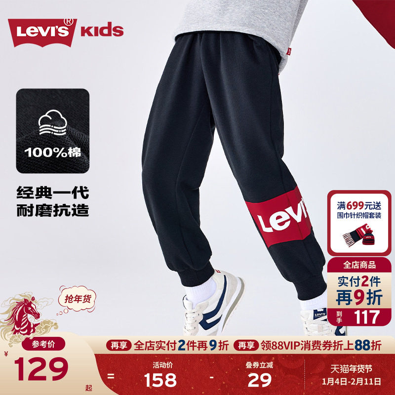 Levis李维斯童装儿童裤子春秋新款男童运动裤女长裤卫裤男裤童装