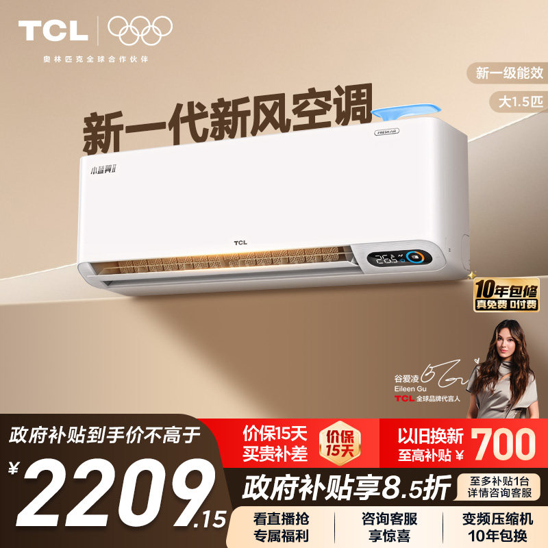 TCL 大1.5匹小蓝翼Ⅱ新风空调挂机60m³/h大新风量新一级能效变频