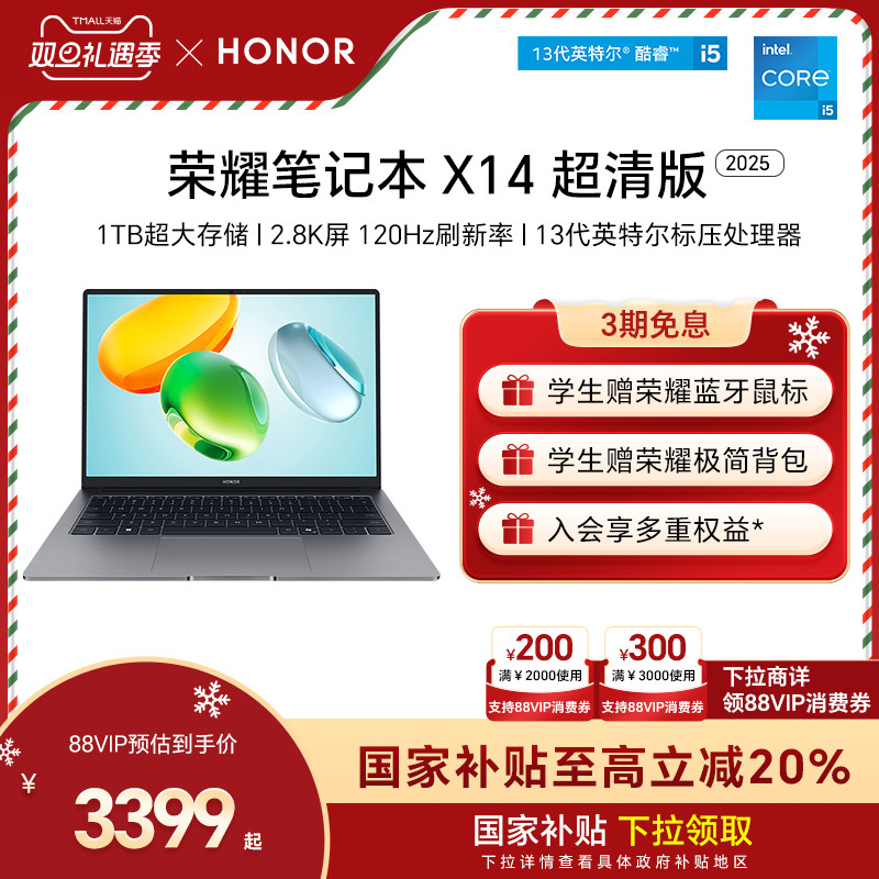 【政府补贴20%】荣耀笔记本X14 超清版13代酷睿标压处理器2.8K 120H