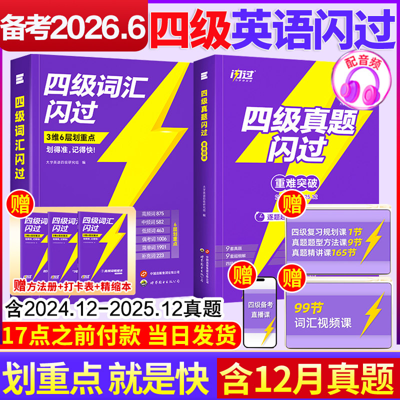 备考2026年6月巨微英语四级词汇闪过乱序版大学真题高频词基础词2025六级试卷