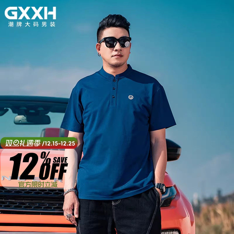 GxxH大码男装潮牌夏装纯色半袖保罗衫胖子宽松加肥加大立领POLO衫