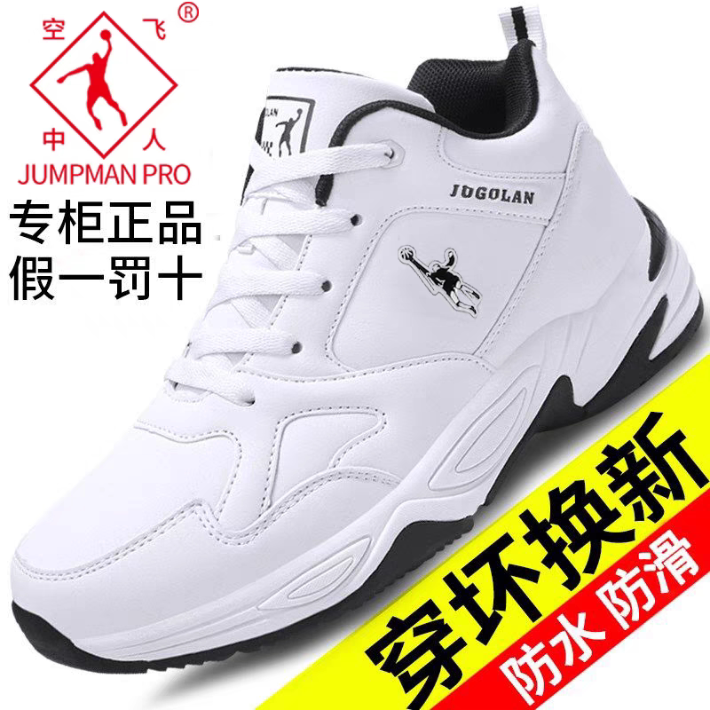 专柜正品乔丹格兰春季新款白色男运动鞋真皮面防水休闲旅游跑步鞋