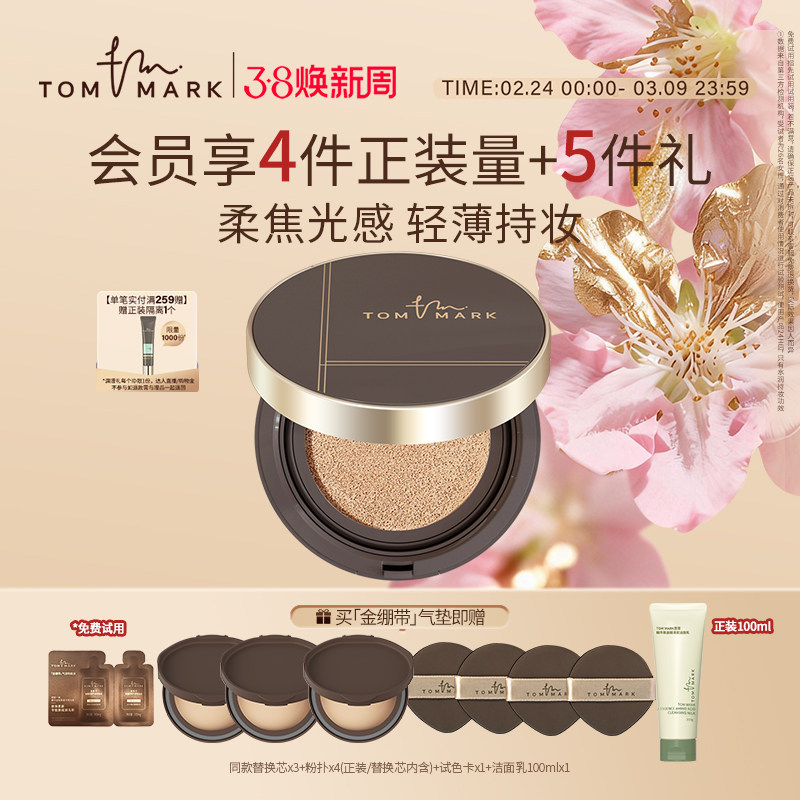 【38开门红】TOMMARK金绷带气垫bb霜粉底液哑光雾面控油唐魅-tmk