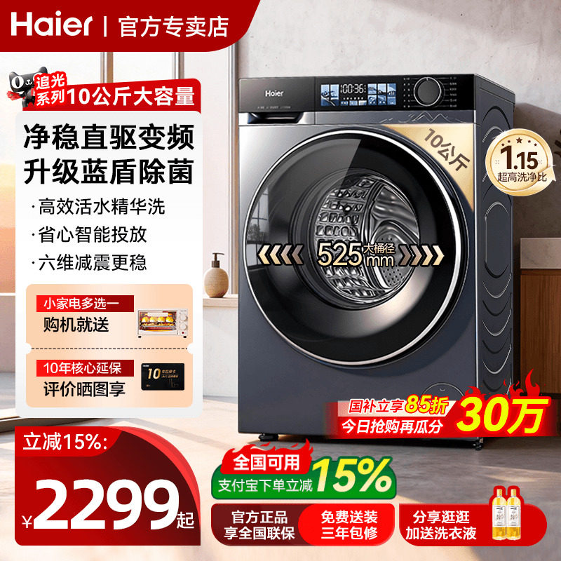 海尔直驱37E滚筒洗衣机以旧换新10公斤全自动家用洗烘一体云溪77E