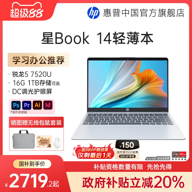 【政府补贴20%】HP/惠普可选星Book 14/15锐龙 7000系R5处理器