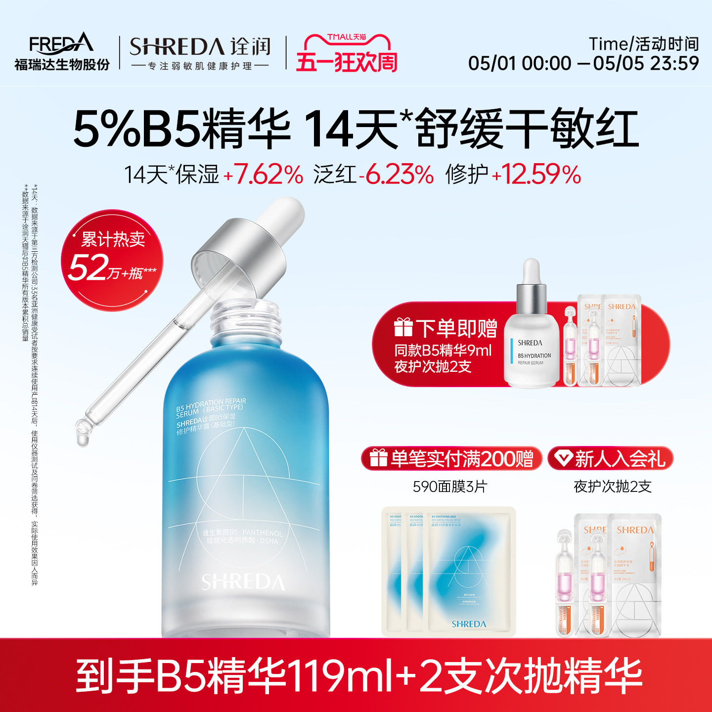 福瑞达诠润B5修护保湿精华液玻尿酸水润补水舒缓干皮泛红敏感肌
