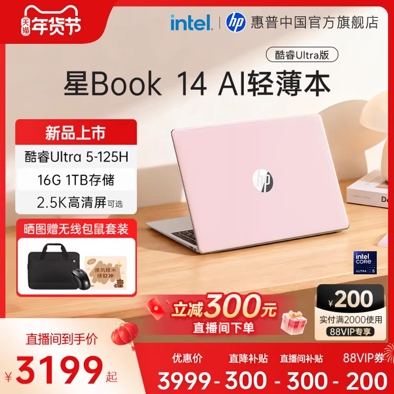 【直播间限时补贴300元】HP/惠普可选星Book Pro14英特尔酷睿ultr