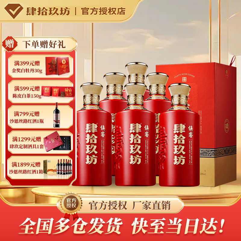 肆拾玖坊侠客53度送礼酱香型纯粮白酒整箱装500ml*6瓶整箱装