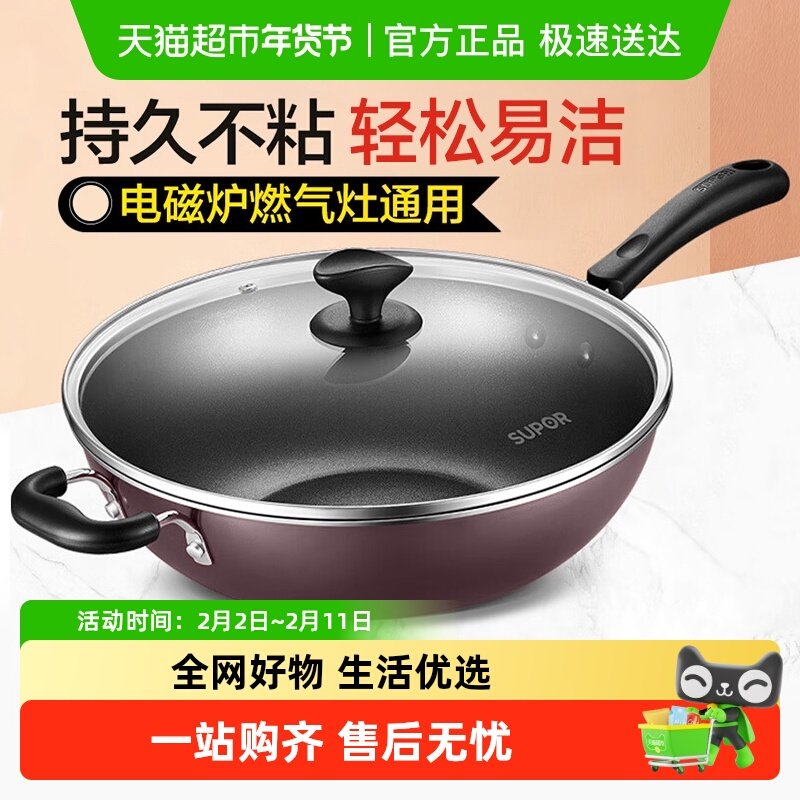 苏泊尔炒锅不粘锅家用无油烟健康易清洁荷叶式不粘燃气电磁灶通用
