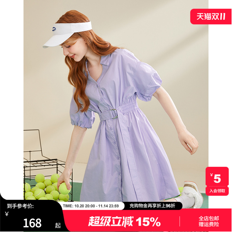 mc2紫色衬衫裙女夏新款短袖设计感甜美气质收腰小个子连衣裙