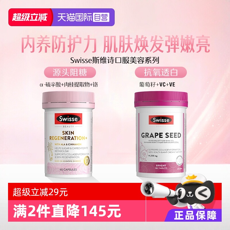 【自营】Swisse斯维诗进口正品双抗抗糖控糖烟酰胺葡萄籽褪黑美容