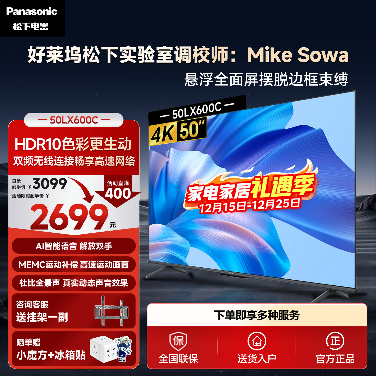 【松下电视旗舰店】LX600C 50英寸4K高清全面屏液晶电视机
